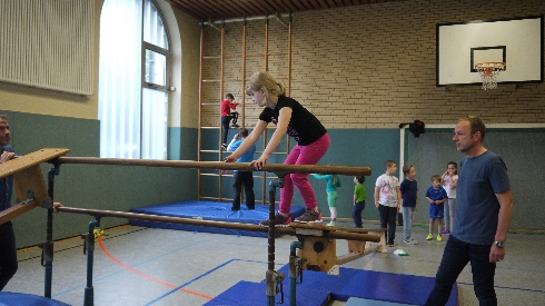 Die drei Disziplinen, die die Kinder ausübten waren Klettern und Balancieren an einer Bewegungslandschaft
