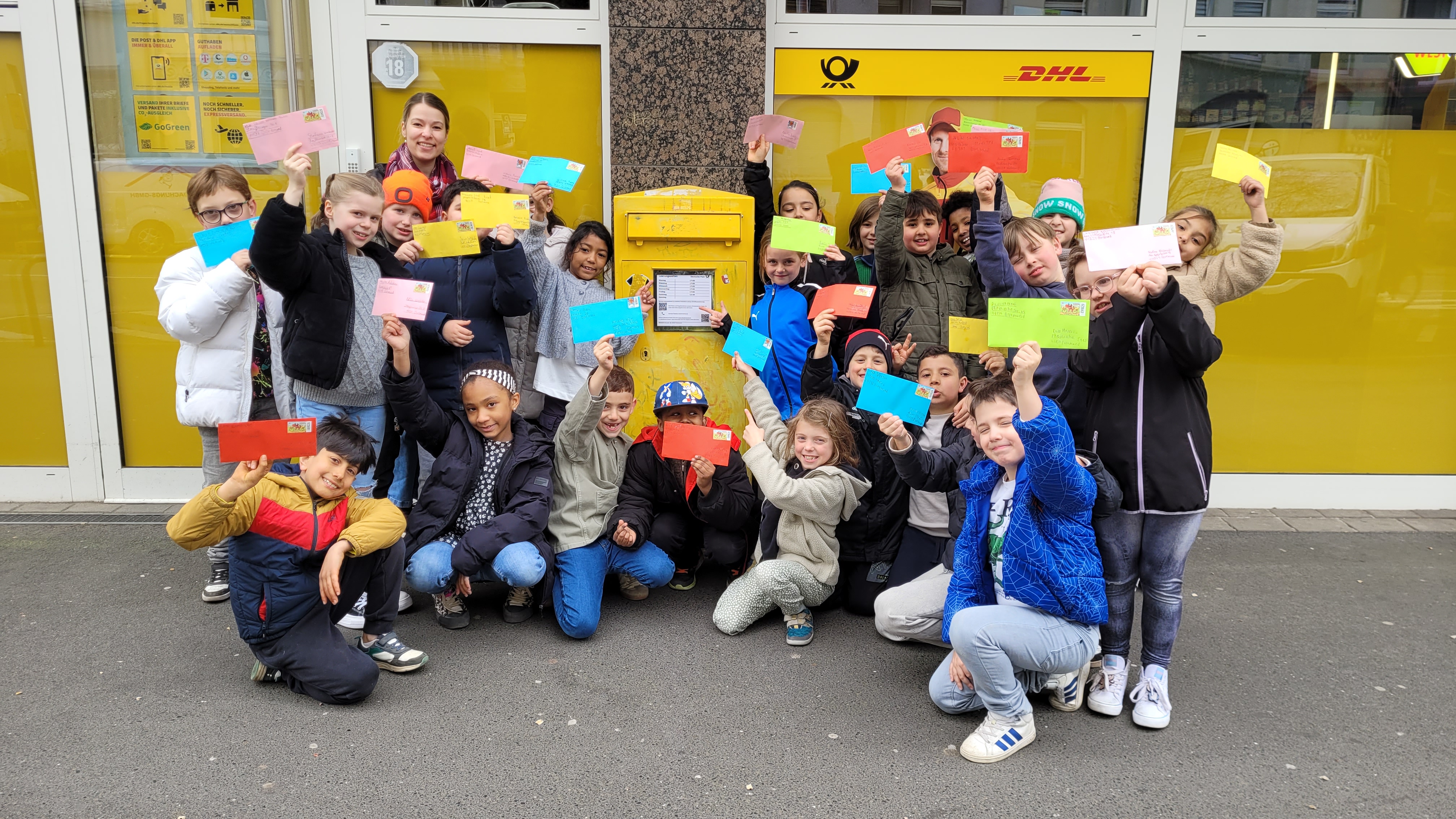 Liebe Eltern und Freunde der Koalaklasse, wir möchten euch von unserer ganz besonderen Unterrichtsreihe zum Thema "Briefe" berichten, die wir in den vergangenen Wochen durchgeführt haben. Wir haben gemeinsam gelernt, wie ein Brief aufgebaut ist und welche Teile er enthält. Wir haben uns mit der Anrede, dem Hauptteil und dem Schluss beschäftigt und auch gelernt, wie man einen Briefumschlag richtig beschriftet. Alle waren mit viel Begeisterung dabei und haben sich darauf gefreut, ihre eigenen Briefe zu schreiben. Jedes Kind hatte die Möglichkeit, über ein Thema zu schreiben, das ihm am Herzen lag. Ob es um ein spannendes Erlebnis, ein Lieblingsspiel oder einfach nur um einen herzlichen Gruß an die Familie oder Freunde ging – die Kreativität der Kinder kannte keine Grenzen! Nachdem die Briefe verfasst waren, durften die Schülerinnen und Schüler ihre Umschläge gestalten und beschriften. Es war wunderbar zu sehen, wie viel Mühe in jedem einzelnen Brief steckte. Am letzten Schultag vor den Osterferien war es dann endlich so weit: Wir haben die Briefe gemeinsam zur Post gebracht! Es war ein schöner Abschluss, bei dem die Kinder stolz ihre bunten Umschläge in den Briefkasten werfen konnten (s. Foto). Dieses Projekt war nicht nur eine tolle Möglichkeit, das Schreiben zu üben, sondern auch eine Gelegenheit, die Kommunikationsfähigkeit der Kinder zu stärken.