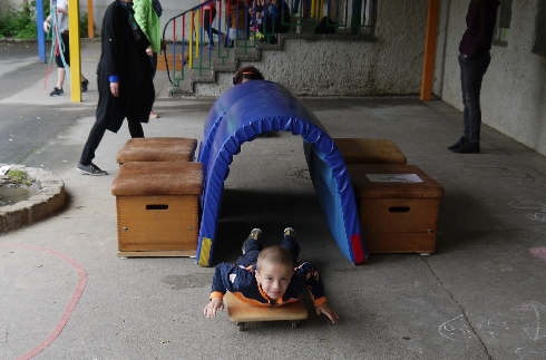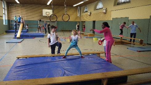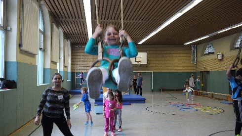 Die drei Disziplinen, die die Kinder ausübten waren Klettern und Balancieren an einer Bewegungslandschaft